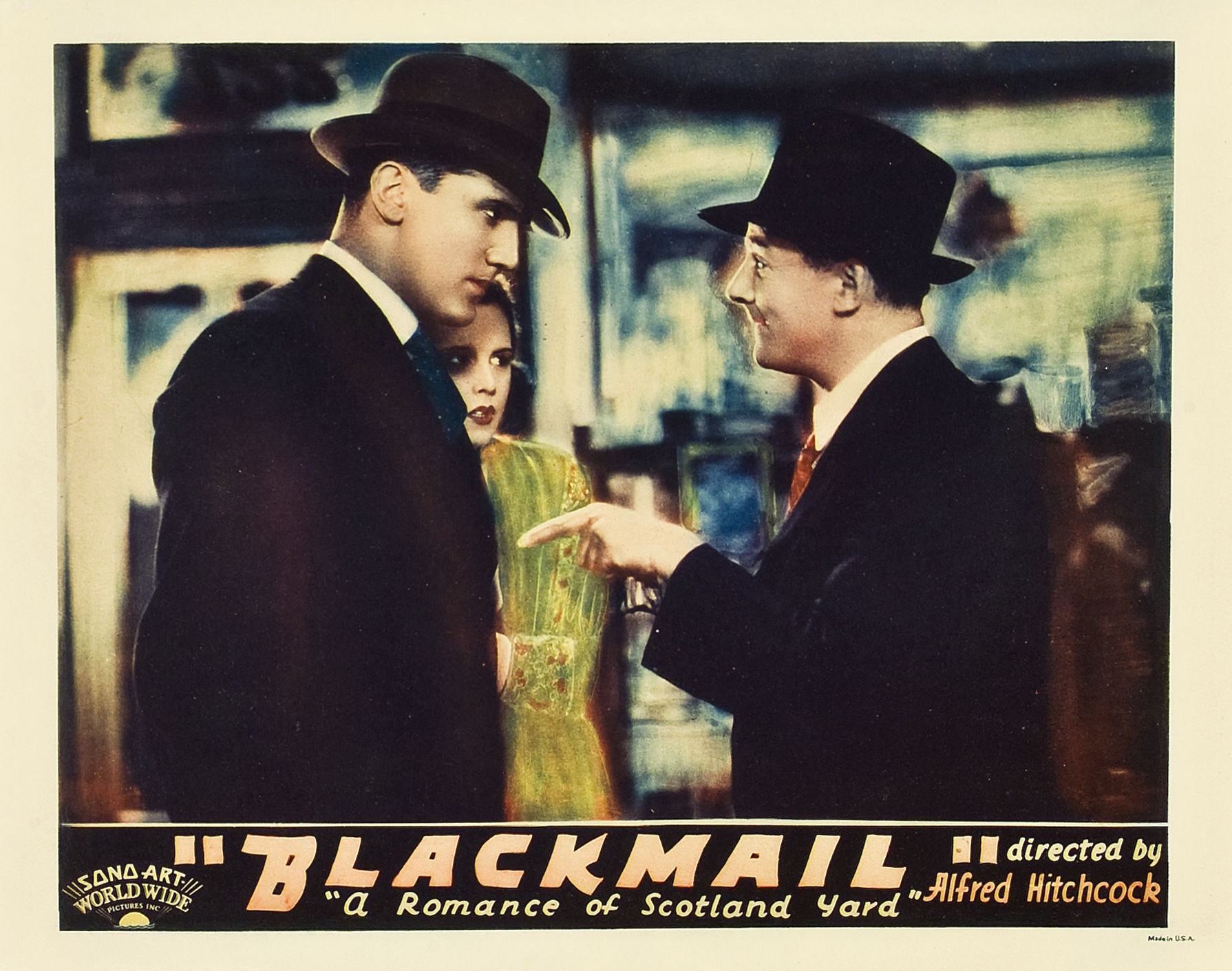 As Hitchcock said, “The silent pictures were the purest form of cinema” and indeed the film contains more shots, more camera movement and the fluidity of the cutting conveys the narrative with greater style. Every scene counts and every shot either enhances the atmosphere or moves the story along. The opening eight minutes of the film is a tour de force of montage in which we see the forces of the law hunt down and “process” a career villain from capture to the police cell. Blackmail displays many of the stylistic elements and themes with which Hitchcock would come to be associated: particularly a fascination with male sexual aggression and female vulnerability. Like the later Sabotage (1936) it features a woman who is protected from the law by her policeman lover. It is also one of a number of Hitchcock’s films to feature a heroine who enters a daze or “fugue” state in which she acts mechanically and apparently without control of her actions—other examples are Murder! (1930), Sabotage and, more ambiguously, Vertigo (1958) and Psycho (1960).